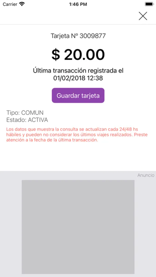 Permite consultar el saldo de la Tarjeta SIRVE, del transporte público de La Rioja (Argentina).