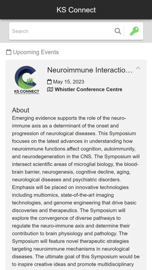 The KS Connect App for Keystone Symposia conference attendees includes conference programs, important venue information, networking features, discussion forums, job postings and more to facilitate an engaging experience and foster connections between attendees. For meetings with hybrid options, the app also provides livestream and/or on demand video access for remote participants, and integrates in-person and virtual attendees into the same platform to spark collaborations across geographic boundaries.