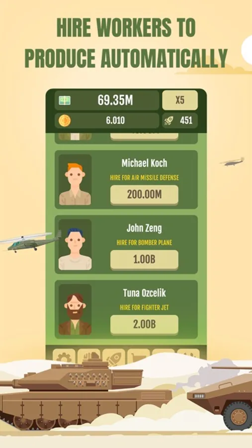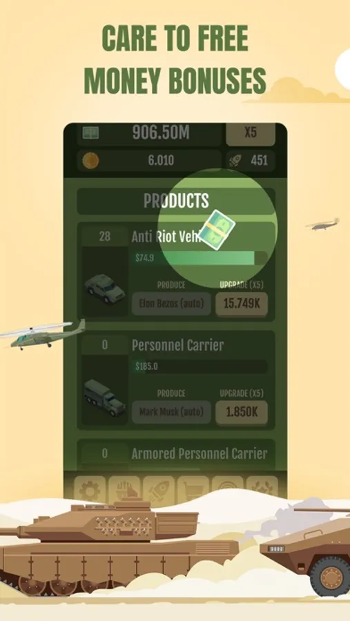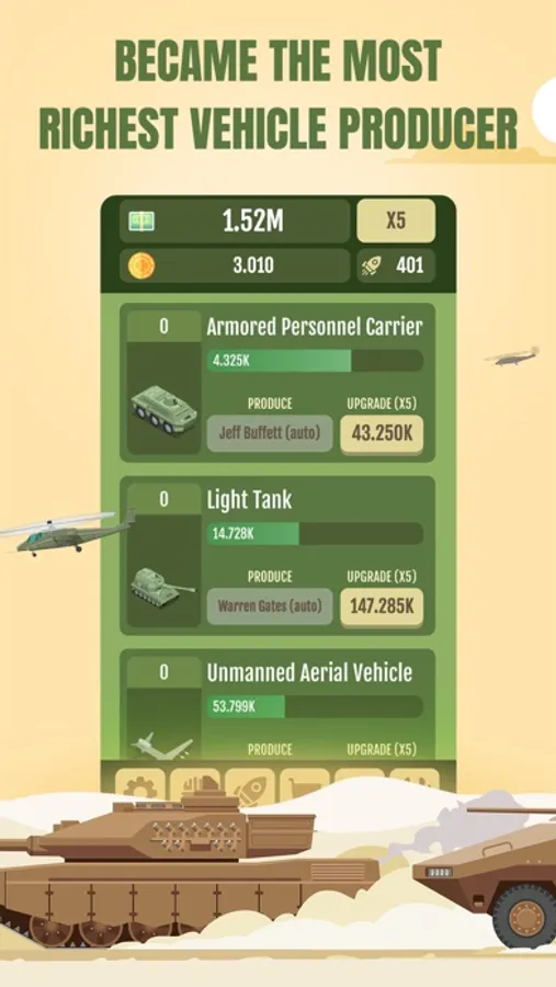 -You are an army vehicle productor in this idle clicker tycoon game-