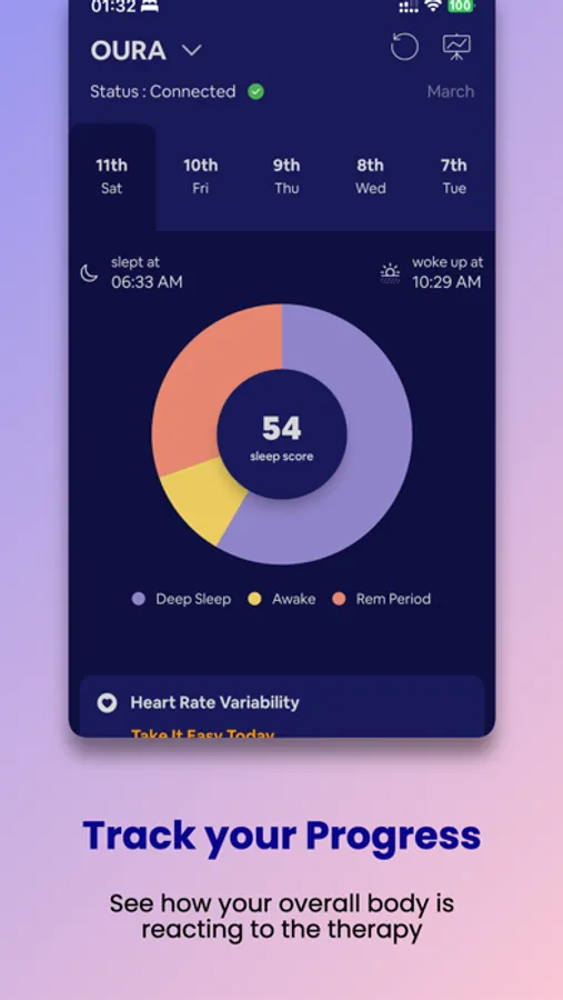 Nirvana currently supports Oura Ring and FitBit integration to develop personalized insights and recommendations for our users based on the health data coming from the devices. Also, Apple Watch integration is coming soon.