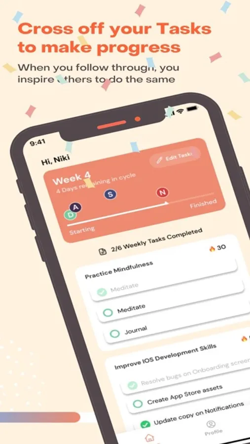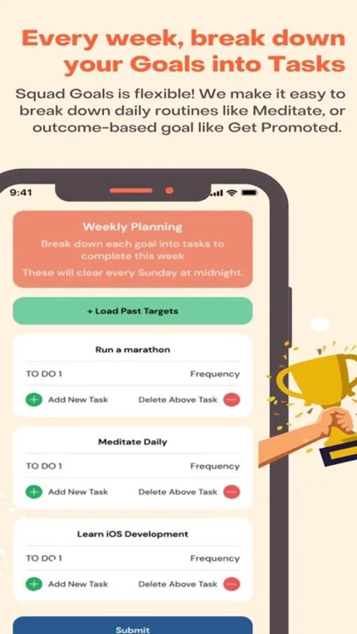 Squad Goals lets you track your 3-6 month long goals, and strive towards them with your squad of friends!