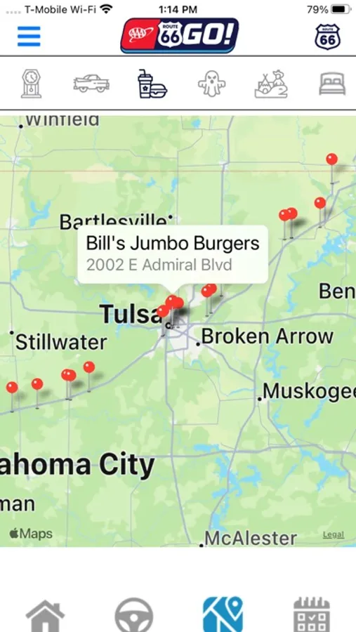• Explore an interactive map of Route 66 attractions in Oklahoma