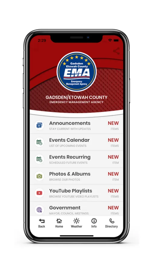 The Gadsden/Etowah County Emergency Management Agency coordinates basic disaster capabilities of all the local governments in Etowah County. The EMA is also the county's coordinating body with state and federal agencies to reassure the citizens of Etowah County are fully protected and accommodated before, during, and after disaster strikes. Tools like Shelter Etowah, Live Tower Cams, and weather stations assist in the mission as well.