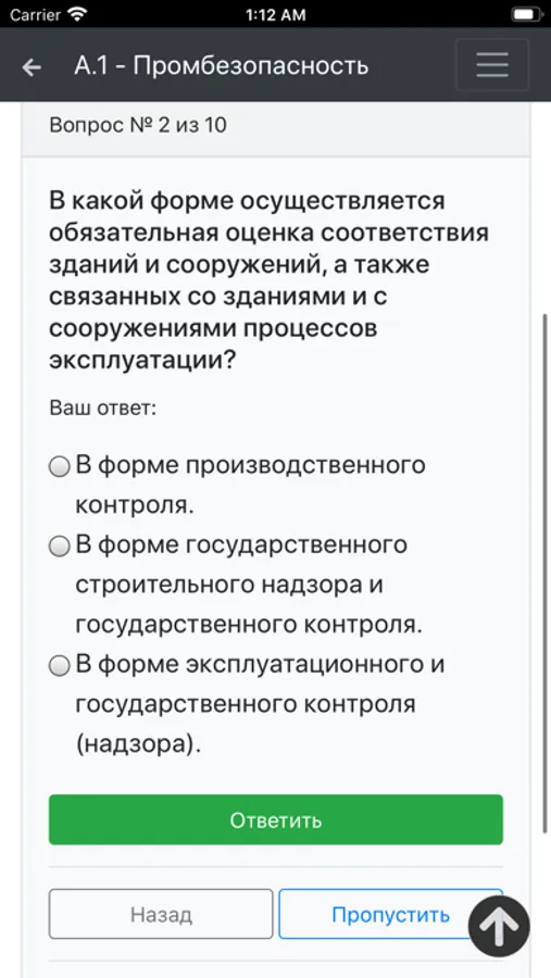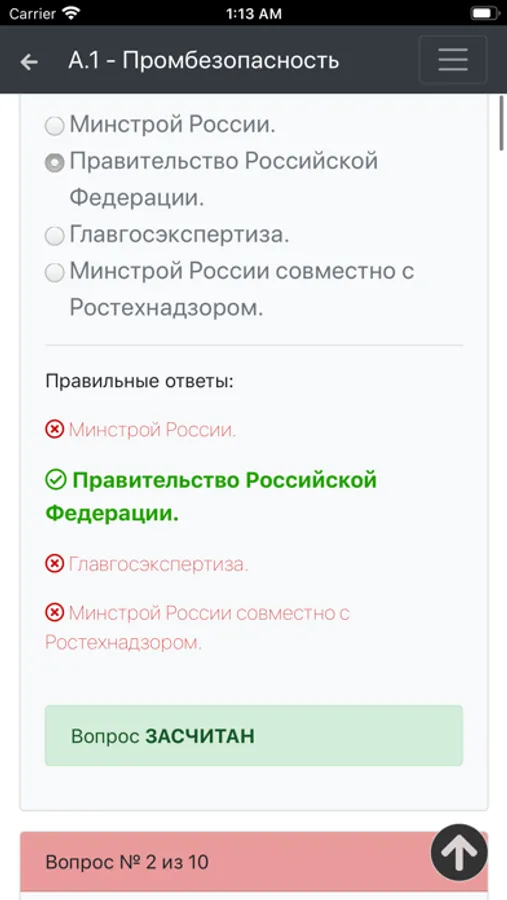 Приложение для подготовки и сдачи теста в Рос. Тех. Надзоре по теме