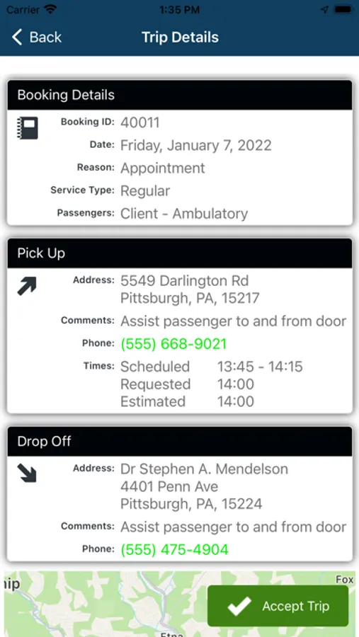 The ReadyRide App, a demand response mobile data terminal (MDT), used by the contracted and credentialed transportation provider network, allows Drivers to see previous, current, and future trips in real-time. The Driver App allows ReadyRide Services to better handle same-day bookings, improve on-time performance, and increase passenger trips per hour the increased efficiency.