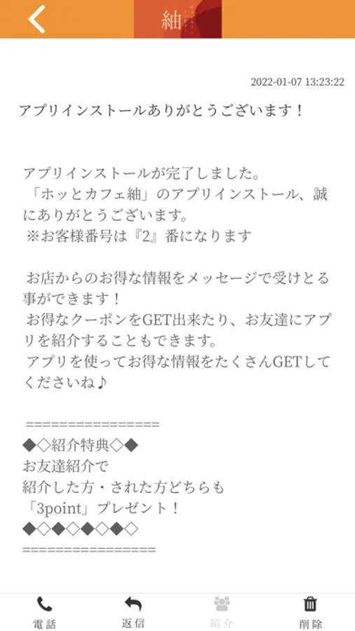 ホッとカフェ紬のアプリをSNSを通じてお友達に紹介する事ができます。