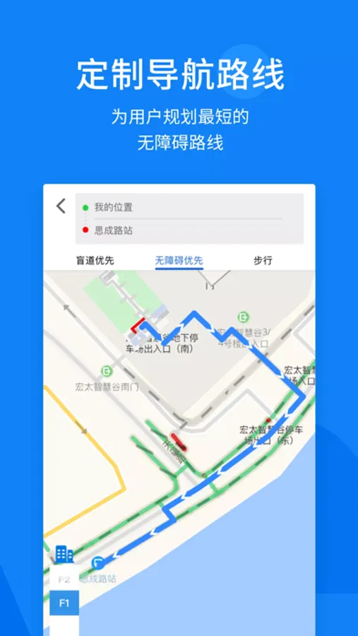 3、为视障人士/行动不便人士定制无障碍导航路线;