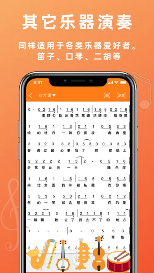 海量歌谱、持续更新、可收藏、支持上传、动态谱、支持移调、伴奏、简&线谱等