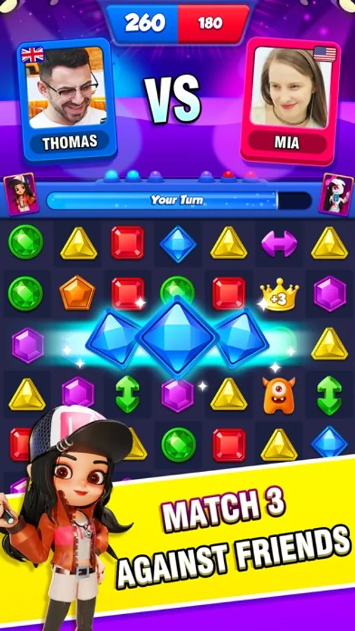 Wanna be the top match master in online match 3 PVP multiplayer games? Wanna try more extra moves? Wanna experience the PVP games glorious moment of victory? Join [Jewel Party] to show your excellent performance in a puzzle match 3 multiplayer games now!