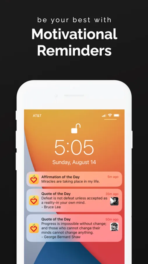 - Daily Inspirational Reminders: Daily positive quotes & affirmation reminders are effective ways to keep yourself going when times are tough and stay inspired when reaching new goals and dreams. Set the frequency at which you wish to receive your daily reminders