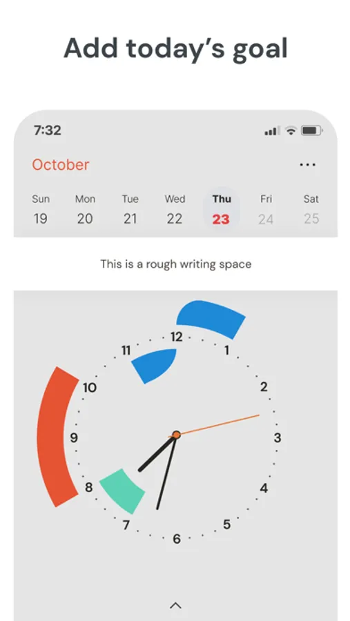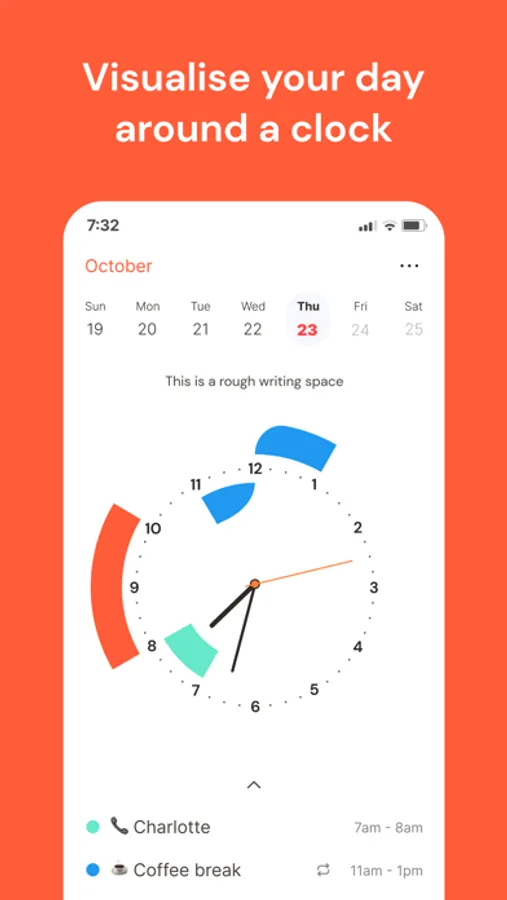 Visualize events and reminders on the main clockface. Lines inside the clockface are before noon, outside lines represent events after noon.