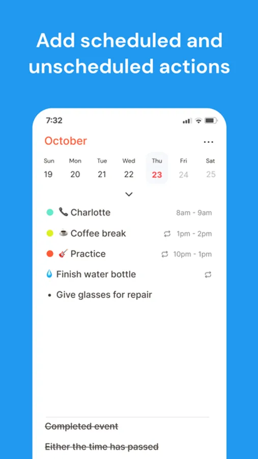 Simply add events or reminders from the main screen with recurrences, notes, custom calendar and more!
