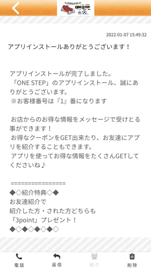 ONE STEPのアプリをSNSを通じてお友達に紹介する事ができます。