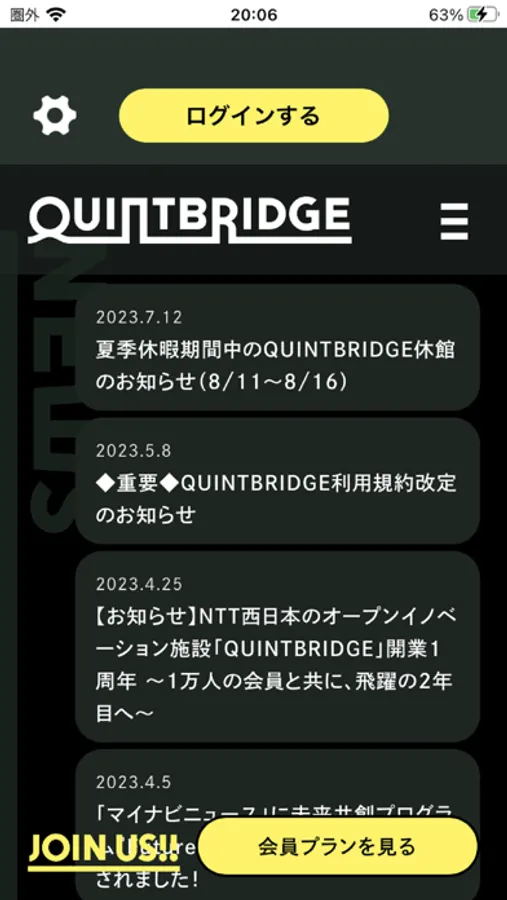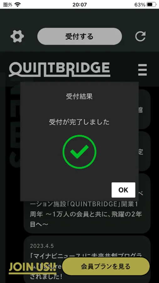 会員登録後、こちらのアプリケーションでログイン頂き、入館の際にご利用ください。