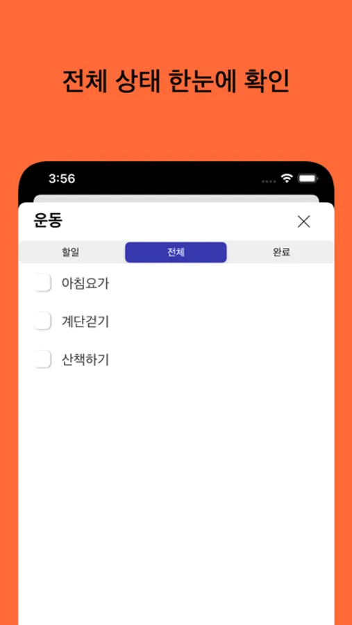 오늘 할일과 완료, 전체 일들을 한눈에 파악할 수 있습니다.