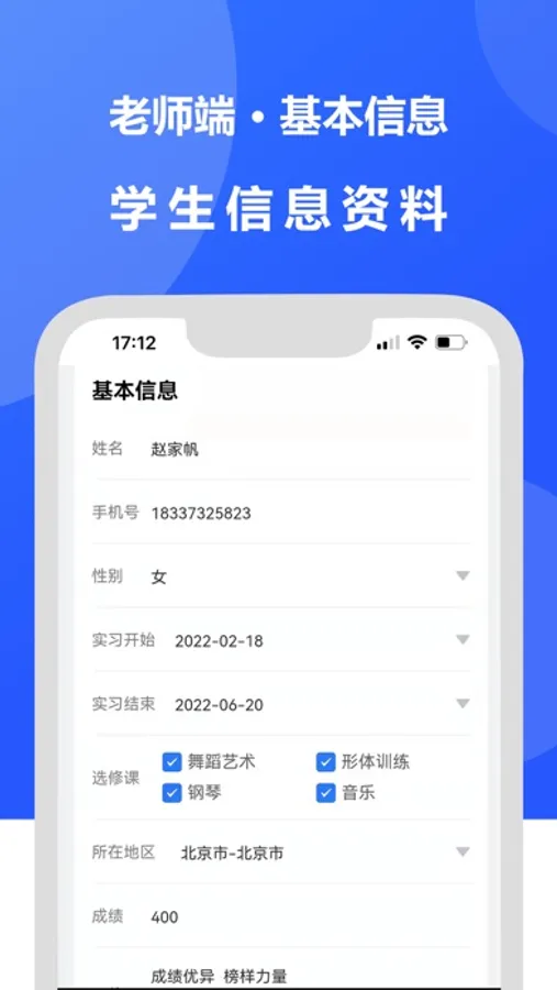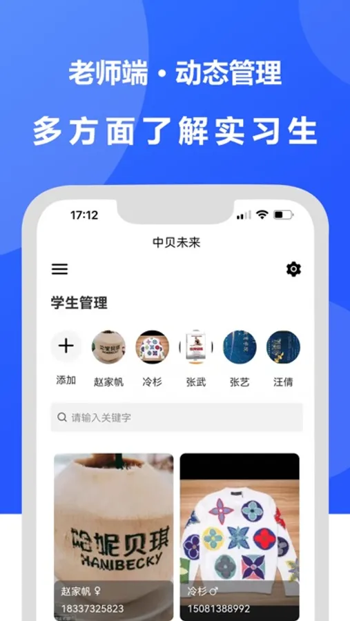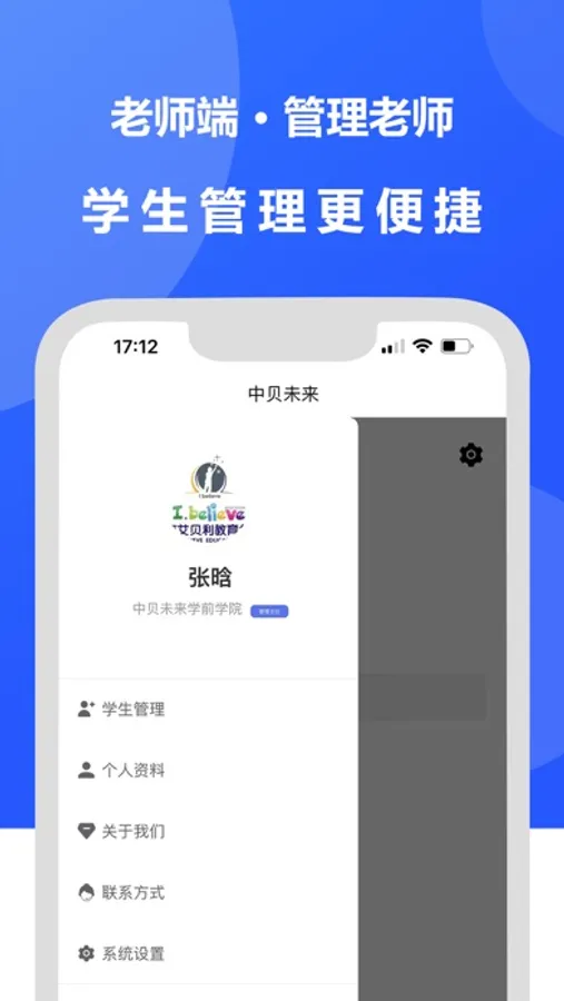 中贝未来APP老师端, 专注学前教育互联网领域,依托中贝未来学前教育学院,联盟海量幼儿园,幼教用人单位及企业库;在线化实习生文字个人介绍+视频个人精彩展示+学院老师真实评价,生成个性化电子真实微简历,让幼教人才更真实,更可靠,更省时省事;助力学前教育专业实习生就业稳定; 师资稳定; 降低实习就业试错率;节省成本 ;获得社会,行业,幼儿园,家长,孩子们的认可尊重;为中国幼教崛起而努力!