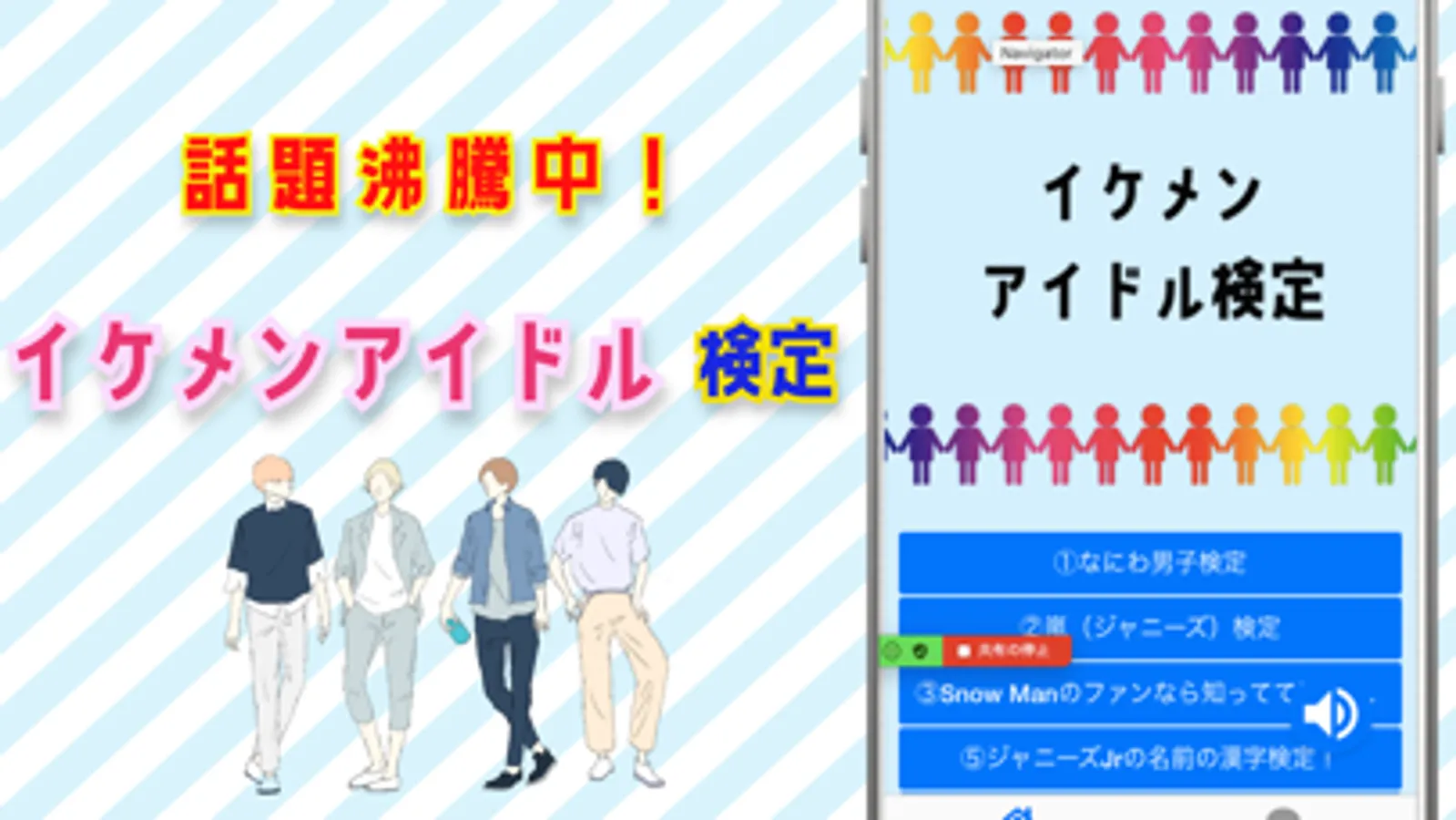 話題のイケメンアイドルのクイズアプリです。