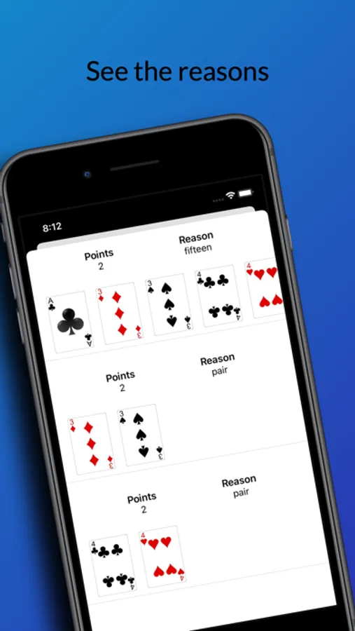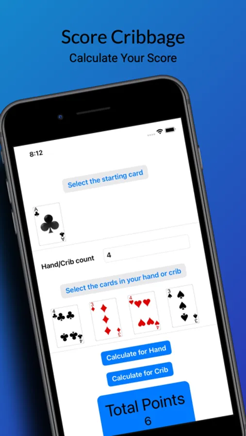 A simple Cribbage Score Calculator. Enter the cards in your hand and let the app give your score. No more muggings!