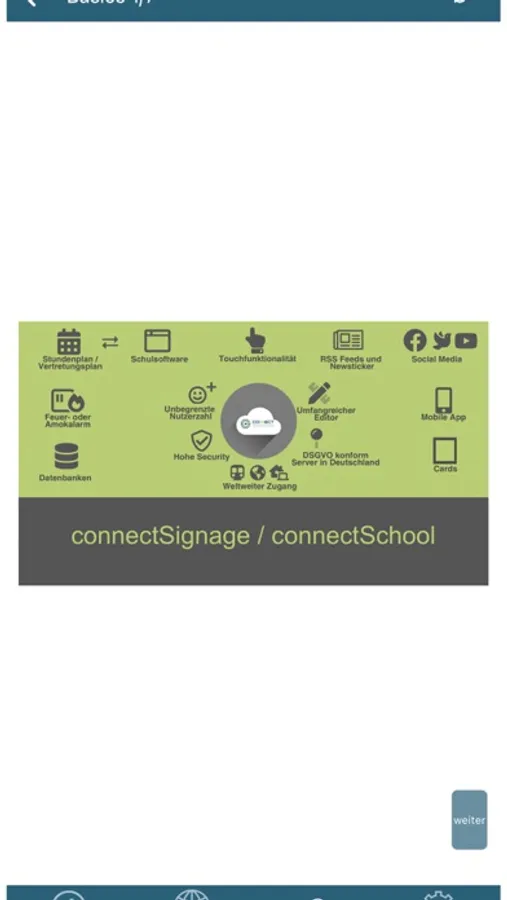The connectInfo app is the ideal complement to the digital signage software connectSignage and connectSchool.