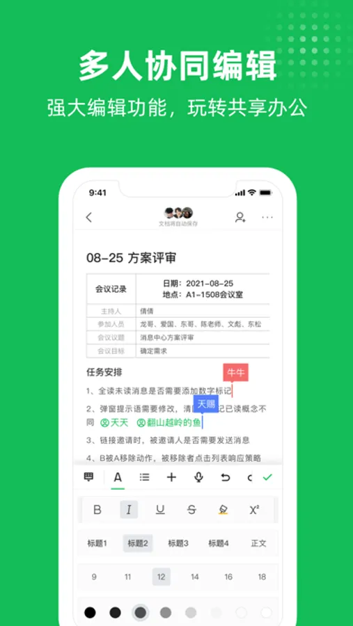 支持多人编辑同一篇文档,即时显示所有变更,高效协作