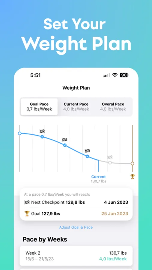 Whether you are losing or gaining weight, splitting your goal into multiple checkpoints is a good idea. Small steps are easier to take and make your journey more satisfying.