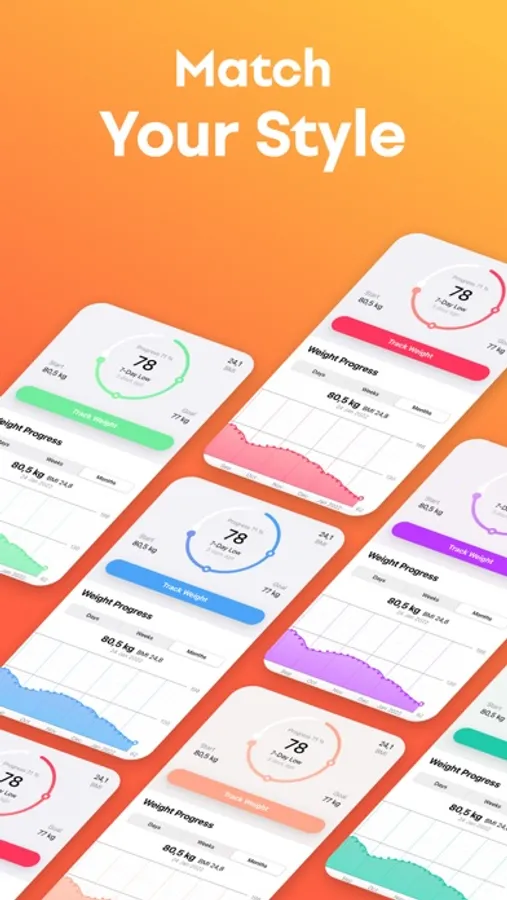 You can track your weight, calculate body mass index (BMI) and see your progress on the daily, weekly, or monthly chart. Our scale is simple with a beautiful design. Because your weight fluctuates, we focus on displaying a 7-day low and more meaningful trends. Daily weigh-ins might be confusing and obstruct the big picture.