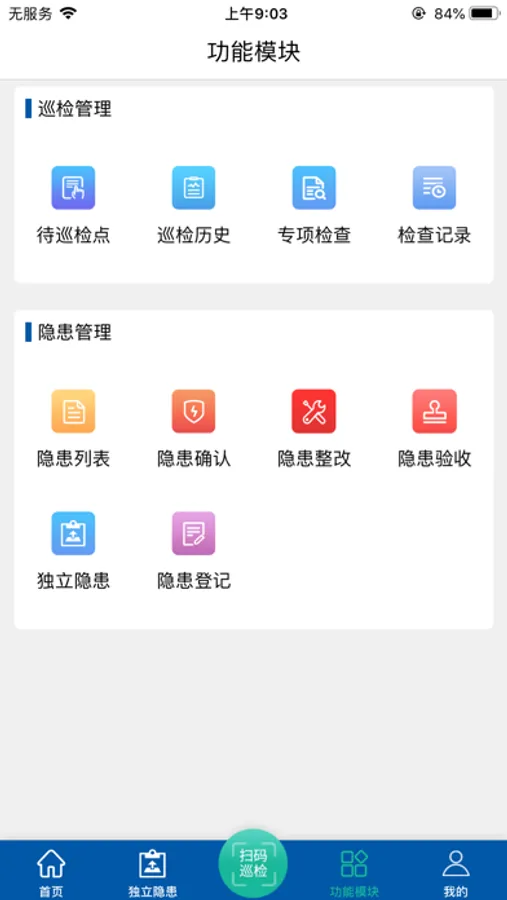 巡检管理模块包括巡检频率管理、巡检考核管理、专项检查,完成对风险点的责任考核、巡检频率设置,计划专项检查表等管控过程。