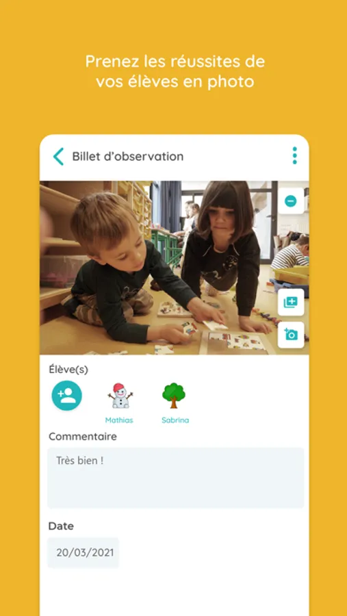 Prenez en photo les réussites de vos élèves vous-même ou laissez les enfants le faire grâce au mode élève.