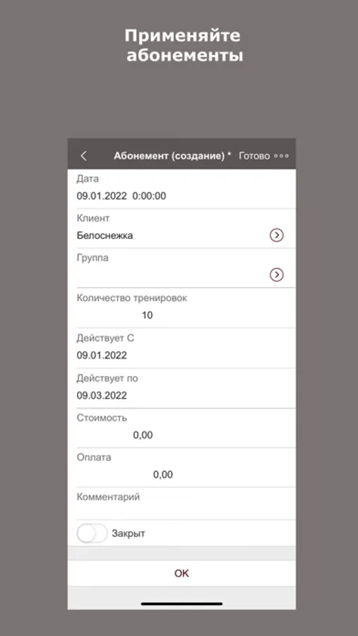 Внимание! Бесплатно в приложении можно внести не больше 10 клиентов. Весь функционал доступен сразу. Возможность внесения неограниченного количества клиентов приобретается в приложении за отдельную плату в разделе покупки. Покупка производится один раз и навсегда. Подписок нет.