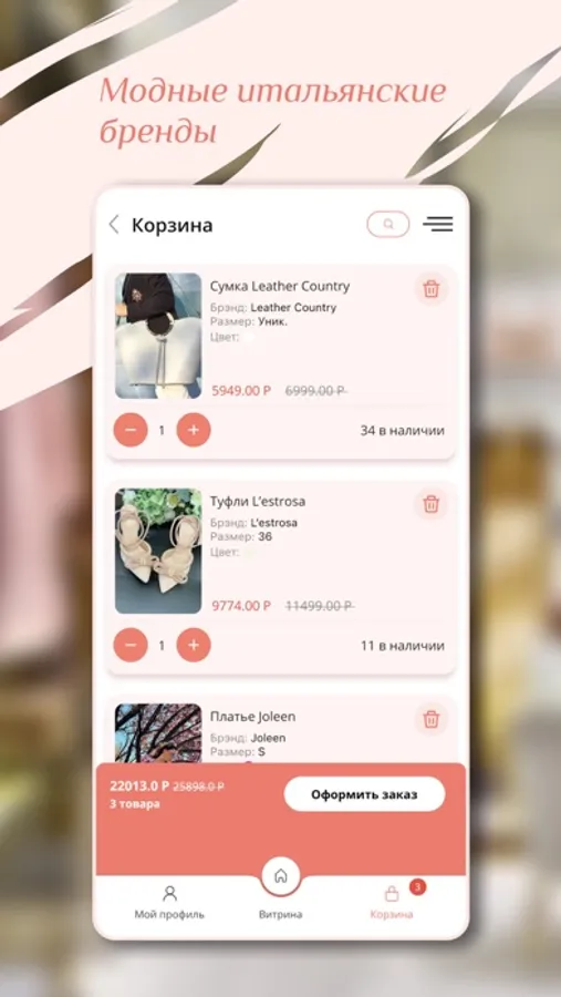 Интернет-магазин My Italy представляет бренды, которые придерживаются принципов устойчивого развития. Только качественная одежда, актуальные силуэты и трендовые оттенки для незабываемых образов. Загружай приложение, становись частью клуба My Italy и получай круглосуточный доступ к лучшим вещам по выгодным ценам, привлекательным акциям и сногсшибательным скидкам. Настраивай уведомления, чтобы не пропустить самые свежие предложения для яркого шопинга!