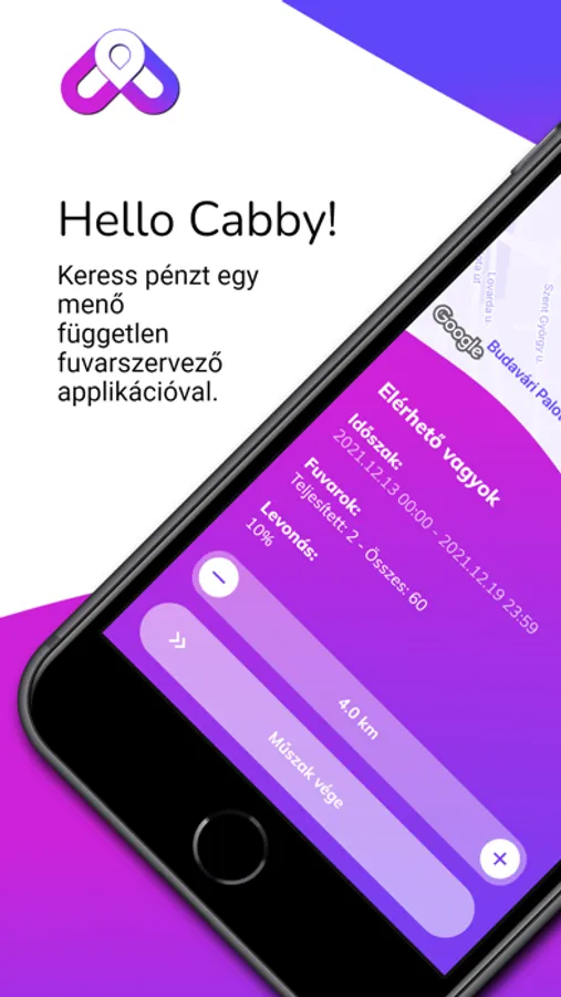 A Cabby egy menő független fuvarszervező applikáció. Segítségével egyszerűen növelheted a bevételeidet azzal, amit szeretsz – a taxizással.