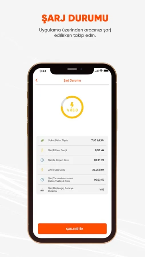 Uygulama üzerinden aracınızın şarj sürecini takip edebilirsiniz.