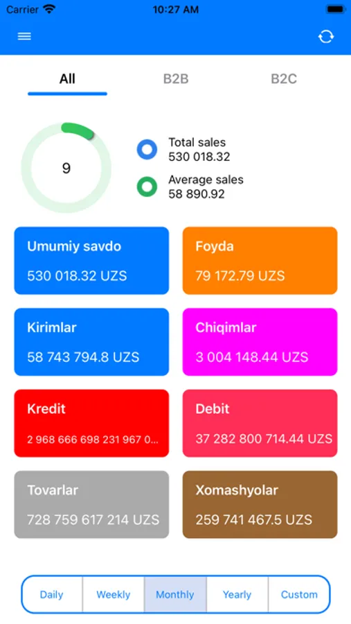 Ilova tashkilotingizning buxgalteriya ma'lumotlar bazasi va veb-xizmati bilan birgalikda. Xavfsiz shakldagi ma'lumotlar menejerning mobil qurilmasiga uzatiladi.