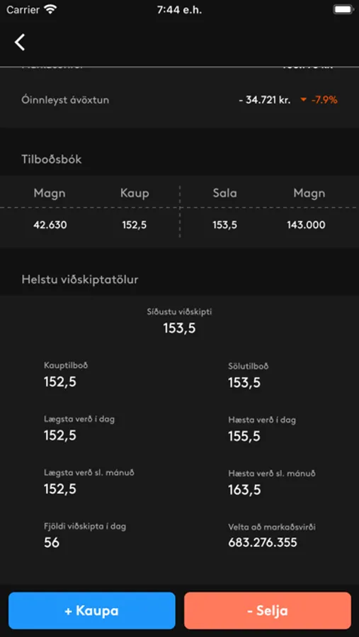 - Fylgjast með óinnleystri ávöxtun á safninu þínu