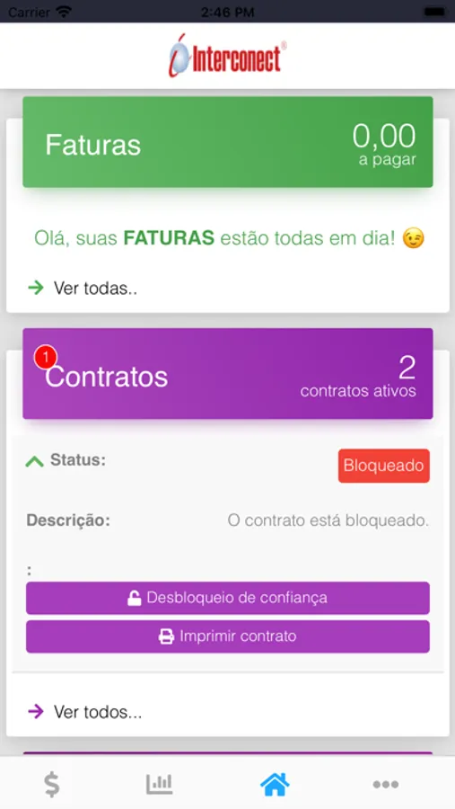 Aplicativo para acessar o serviço de atendimento ao consumidor da Interconect.