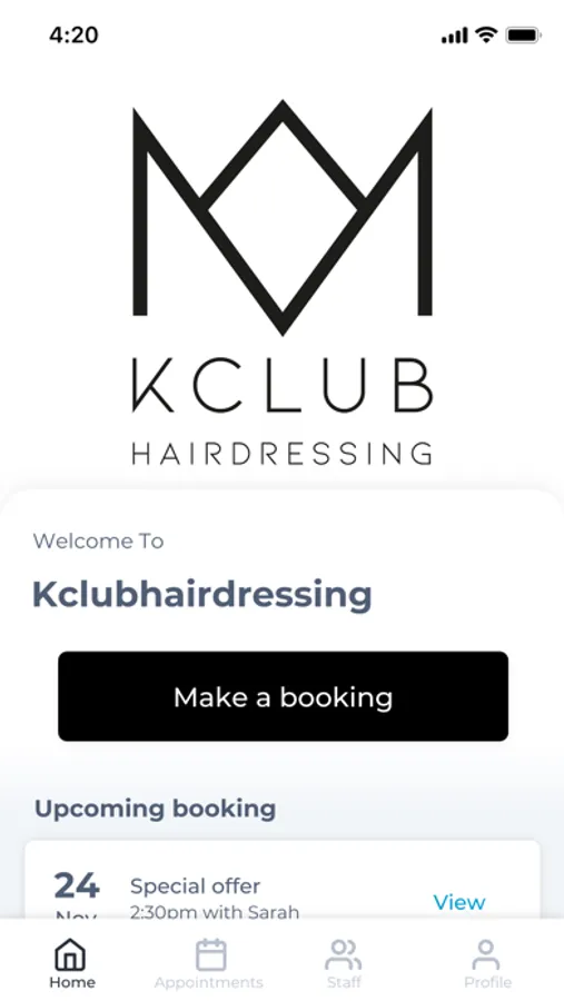 The Kclubhairdressing app makes booking your appointments and managing your loyalty points even easier. You're just a few taps away from feeling good and looking great!