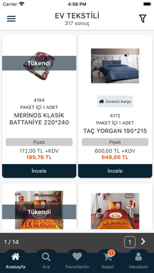 * Ürün kategorilerinde filtreleme yapabilirsiniz.