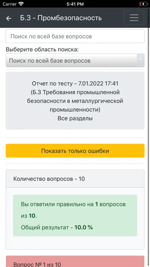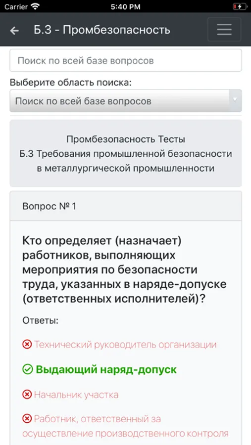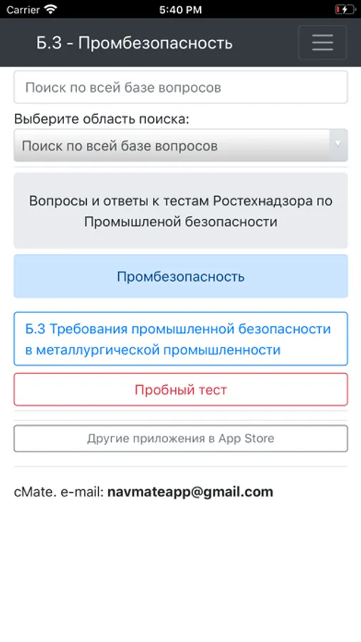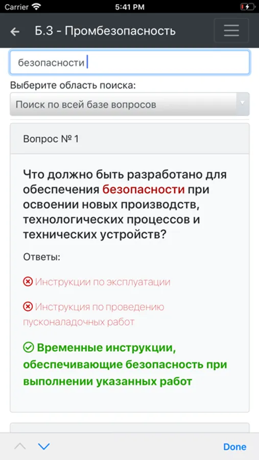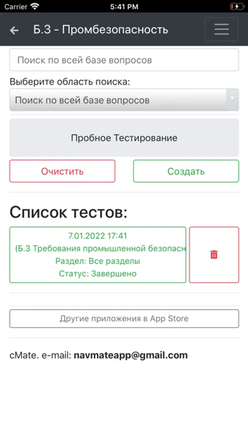 Приложение оснащено удобным поиском по всей базе вопросов или отдельной теме.