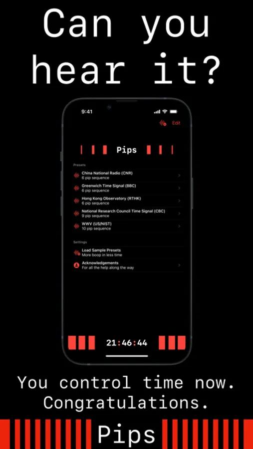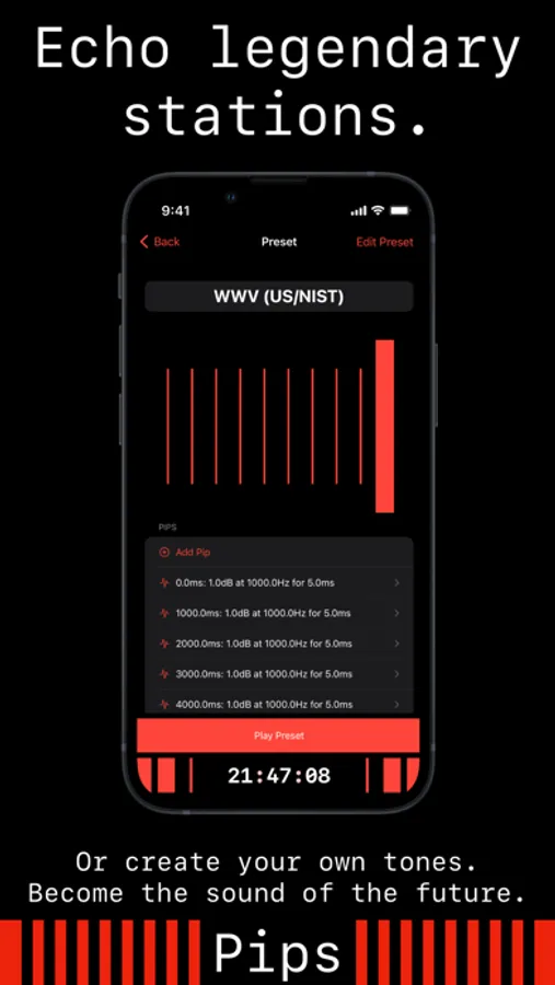 - Use our built in presets to kickstart your new pip-filled existence. Includes time signals used by international broadcasters like the BBC & CBC as well as time stations like NIST's WWV.