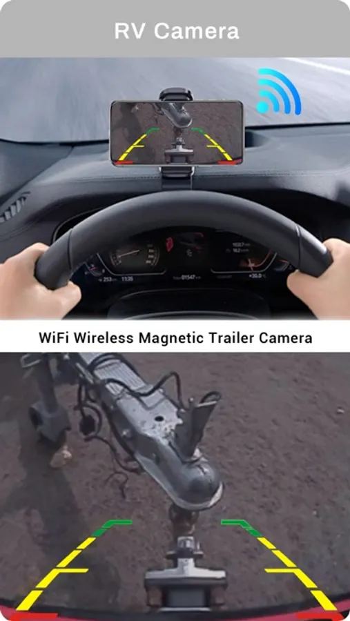 Easy hitch management with your mobile device, hook-up trailer boat. Download the RV Camera app to your smart phone or tablet and connect to the wireless backup camera via its WiFi hotspot. (Direct connection, no network access required).