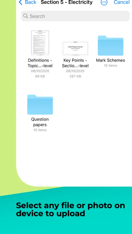 - Simple file selector on the app allows users to upload any file or photo from their phone.