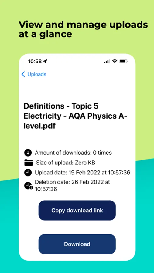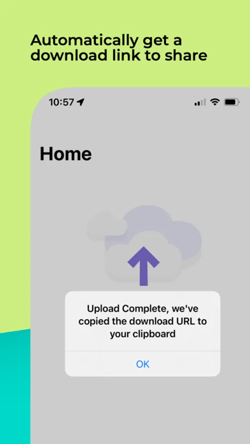 - Download URL is automatically copied to your device's clipboard allowing easy sharing to anyone, or within the app on any Apple device, in seconds.