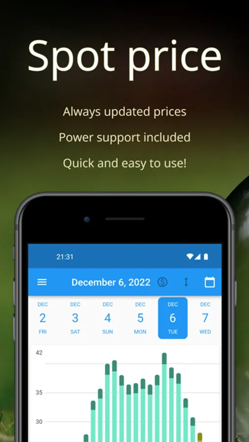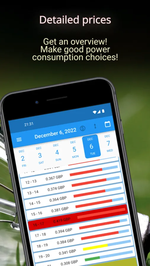 The app gives you a quick overview of whether the price is low or high in the coming hours.