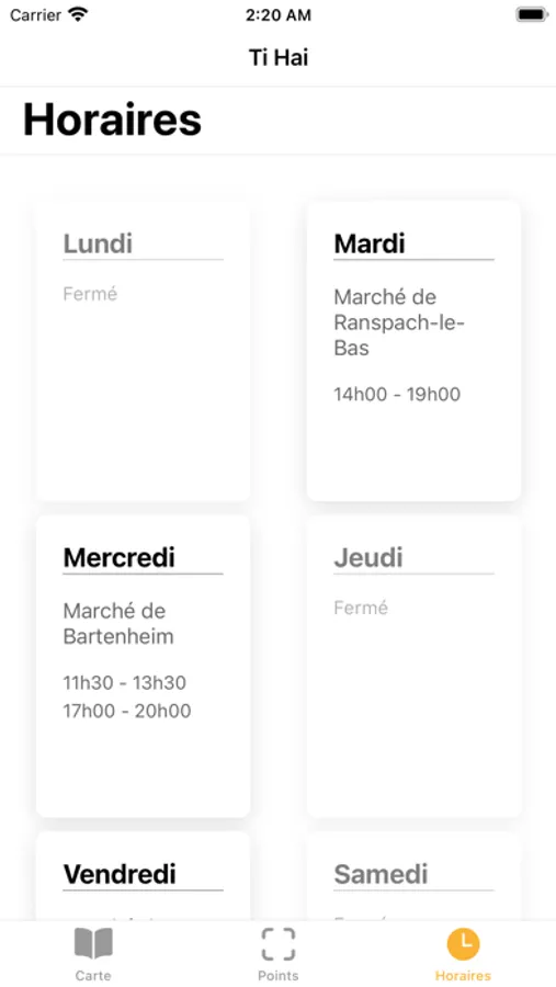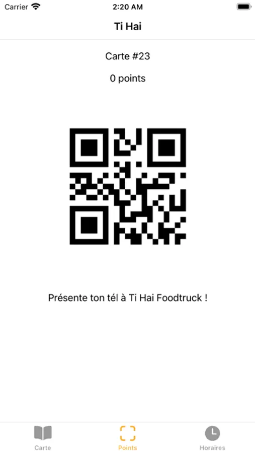 L'application fournit une carte de fidélité virtuelle, le menu à jour ainsi que ses horaires.