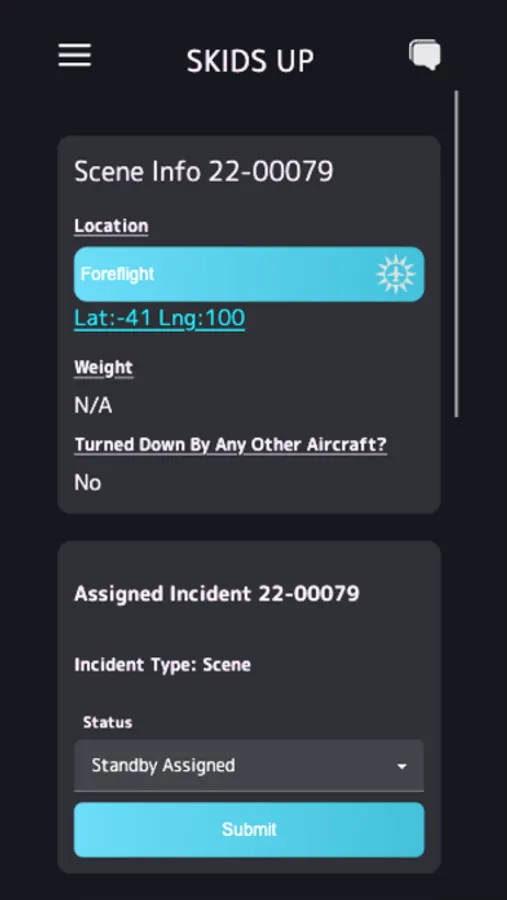 Skids Up is the mobile app for Air Medical Technologies, LLC that keeps pilots and staff on board emergency aircraft up to date on information and incident status updates as they travel between the scene of an incident and medical facilities.