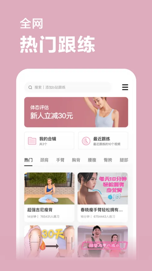 全网热门塑形跟练视频任选组合,与更多的年轻小伙伴结对,遇见更美好的自己!