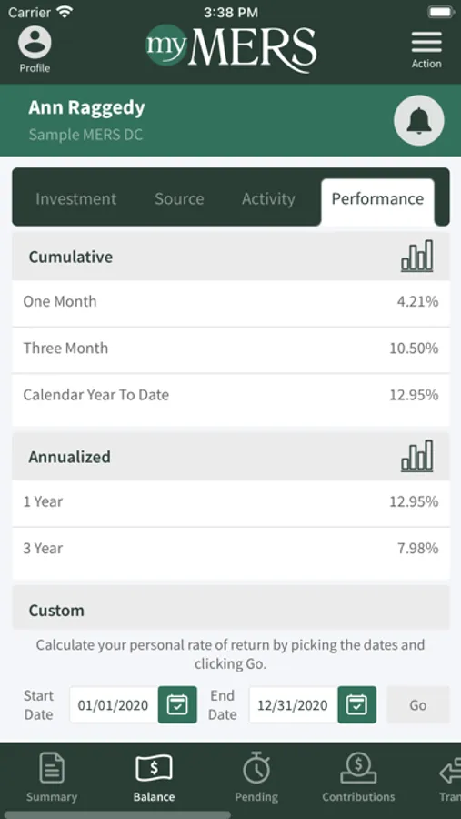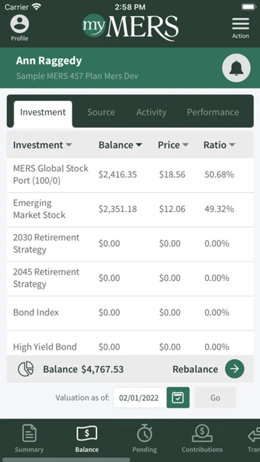 Participants can receive account alerts, check balances, view investment performance graphs, and review contributions.