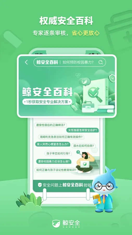 1、鲸安全所提供的急救自救文章、视频、插画等仅供用户参考,不作为诊断、治疗的依据,不能代替医生面诊和医院诊断。若您以此为诊断和治疗依据,由此可能引发的任何负面影响甚至损失由您自行负责,本平台不予以负责。