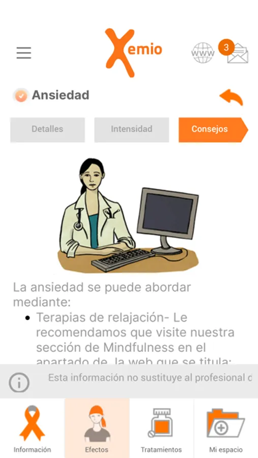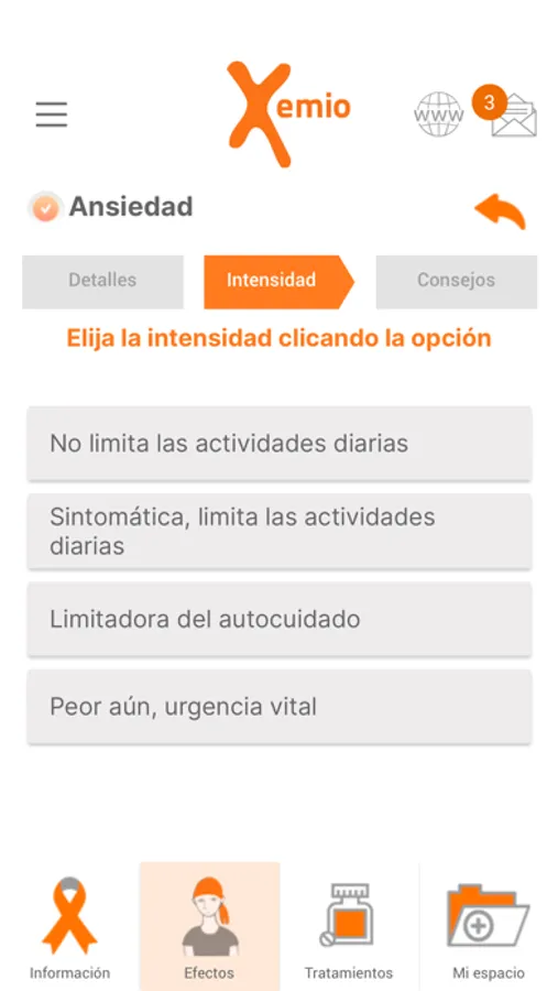 Muchas mujeres con cáncer de mama tienen la necesidad de encontrar información en los medios digitales durante sus diferentes tratamientos. La Fundació iSYS detecta esta necesidad y toma la iniciativa de desarrollar Xemio, una app para ayudar a los pacientes tanto en la vertiente social como en la de auto-seguimiento: la plataforma diseñada para smartphones nos permite ayudar a las pacientes y sus familiares en el seguimiento de efectos secundarios, tratamientos y facilitar la participación en actividades sociales organizadas por las diferentes asociaciones.