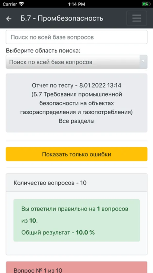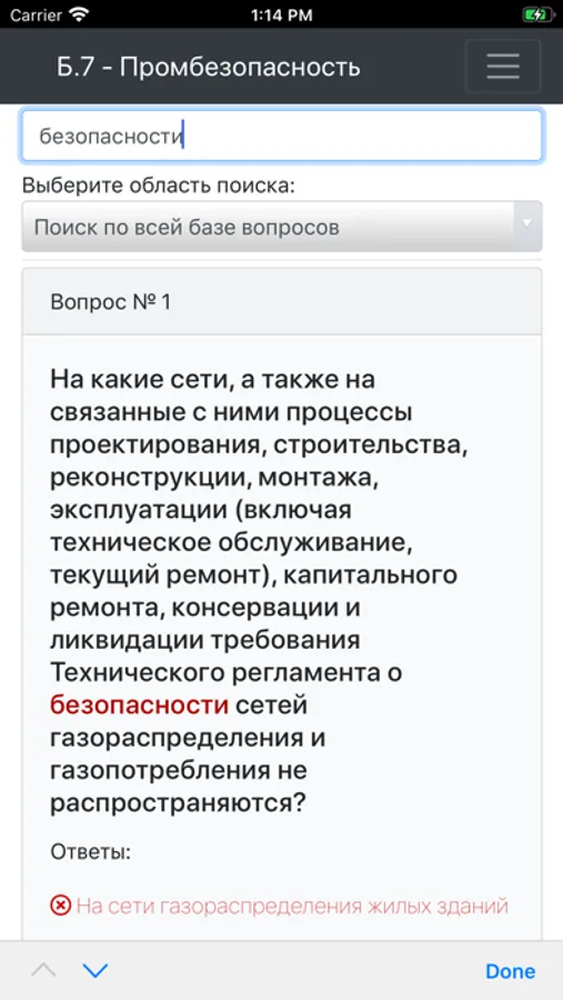 Приложение оснащено удобным поиском по всей базе вопросов или отдельной теме.